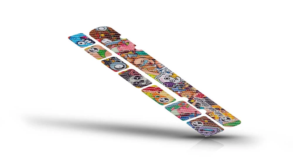 Effektiv vor Lackschäden an der Kettenstrebe schützt die selbstklebende Rahmenschutzfolie von riesel design. Die haptische Oberfläche in Carbonoptik sieht edel aus und ist sehr abriebfest. Fünf erhältliche Designs machen jedes Bike zu einem Eyecatcher. Das „chainguard set“ beinhaltet zusätzlich sieben Patches, welche den Rahmen vor Abschürfungen durch scheuernde Züge oder Leitungen schützen.