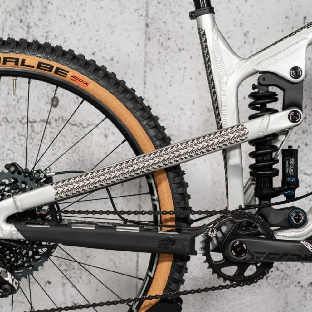 - Nimmt die Farbe des Rahmens an. chain:TAPE 3000 maori ist perfekt für helle Fahrräder. Durch den schwarzen Druck auf transparenter Basis wirkt es wesentlich subtiler auf dunklen Farben. Wenn du ein schwarzes oder sehr dunkles Fahrrad besitzt, solltest du dir mal unser chain:TAPE 3000 maori grey anschauen