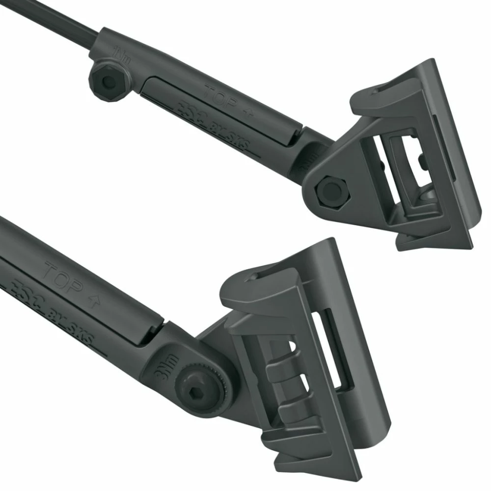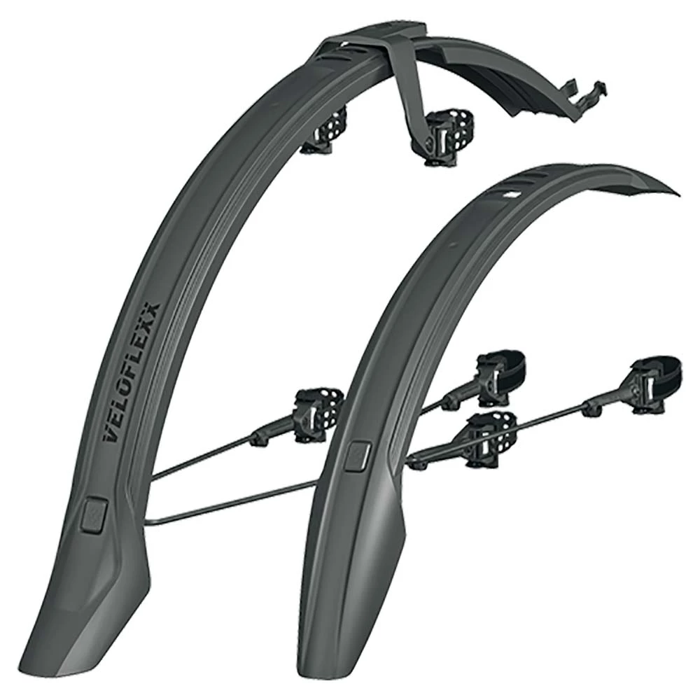 Nachwuchs in der Velo-Familie: Das Radschutz-Set VELOFLEXX 55 aus schlagfestem Hochleistungskunststoff vereint die Stabilität eines festmontierten Schutzbleches mit der Flexibilität eines Steckradschutzes. Durch die VELOFLEXX-Brücke lässt sich der Hinterradschutz anhand von Gummistraps oben an der Sitzstrebe werkzeugfrei befestigen. Sollte trotz Scheibenbremsen ein Quersteg zwischen den Sitzstreben vorhanden sein, muss der Abstand zwischen Reifen und Quersteg 30 mm betragen, damit das Fahrrad mit dem VELOFLEXX Radschutz kompatibel ist.