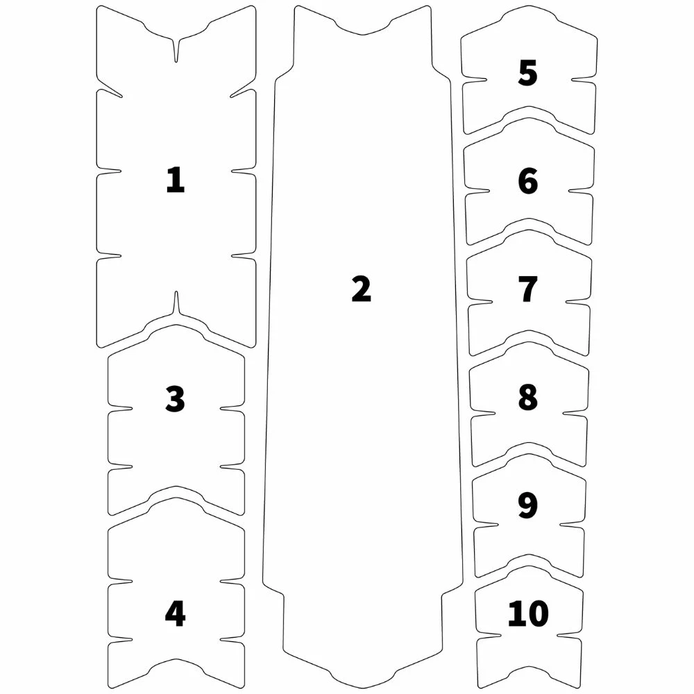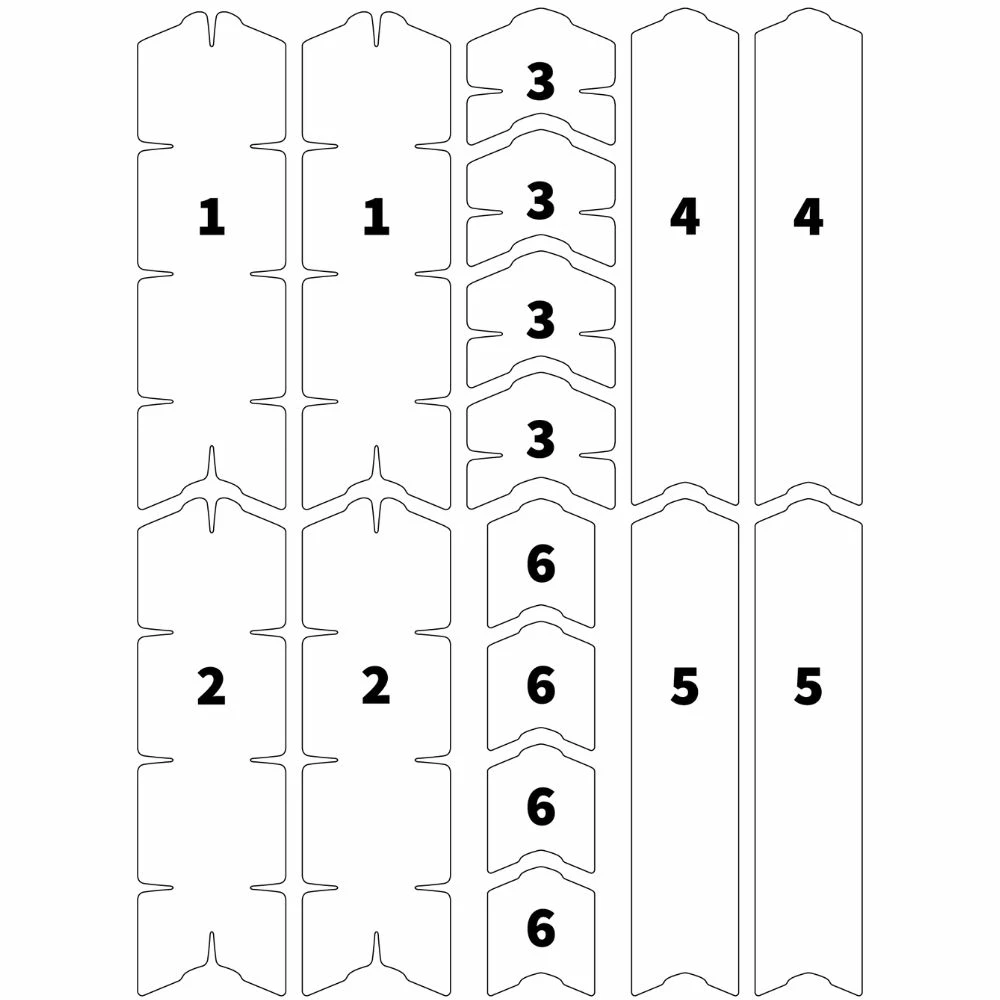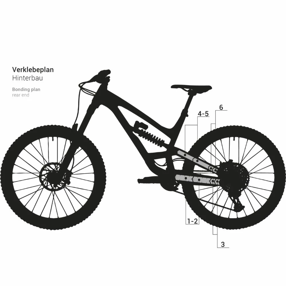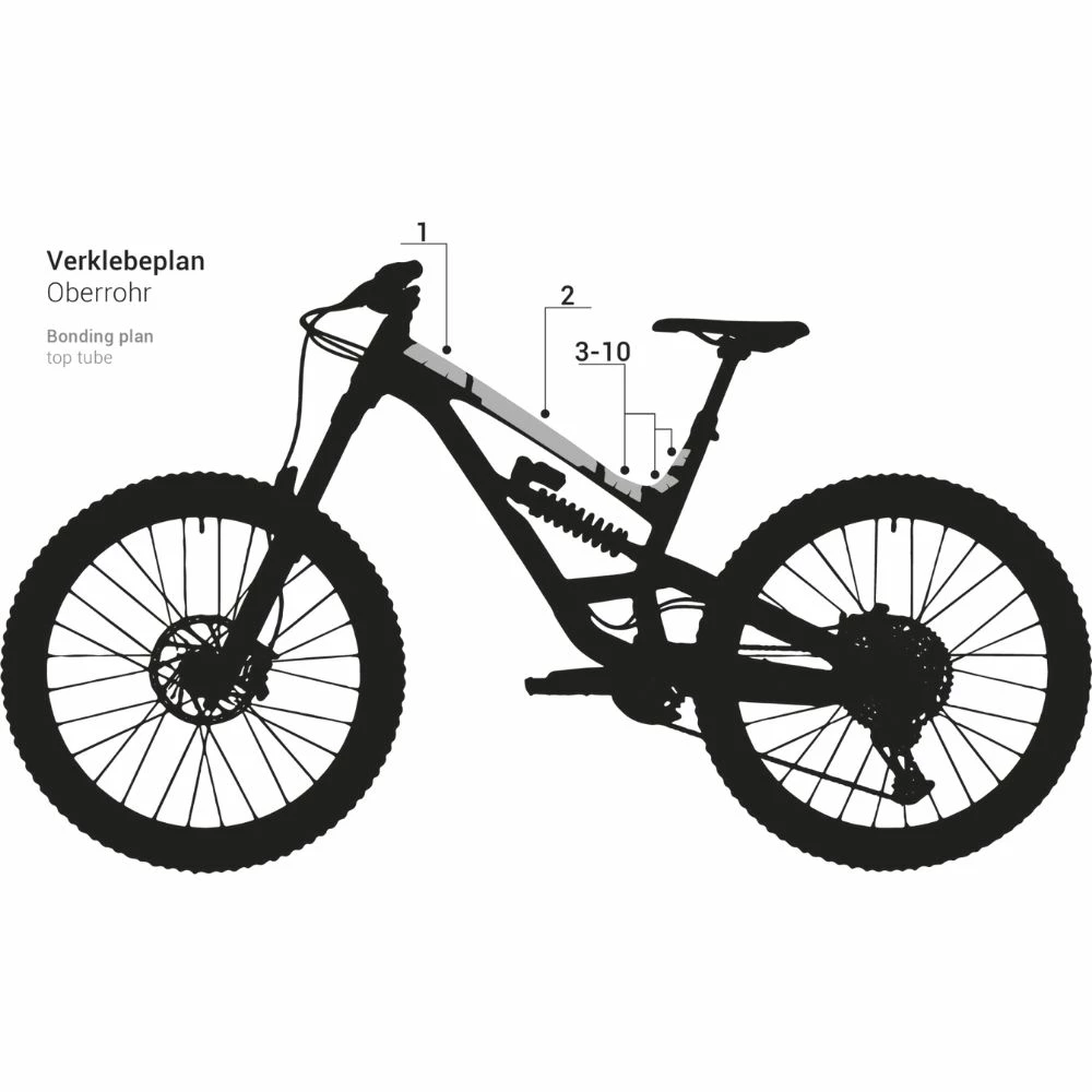 - Das Frame Kit besteht aus Folien für das Oberrohr, Unterrohr, Sitzrohr, die Sitzstreben und die Kettenstrebe