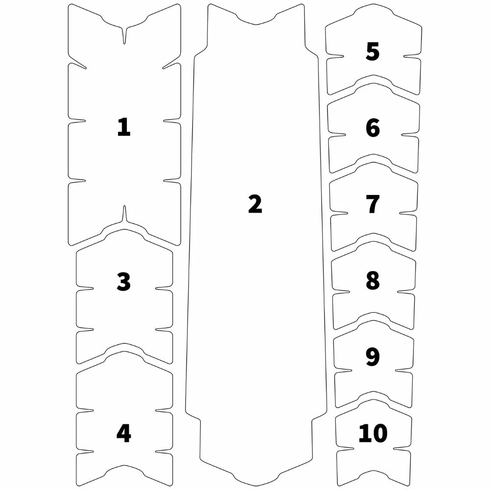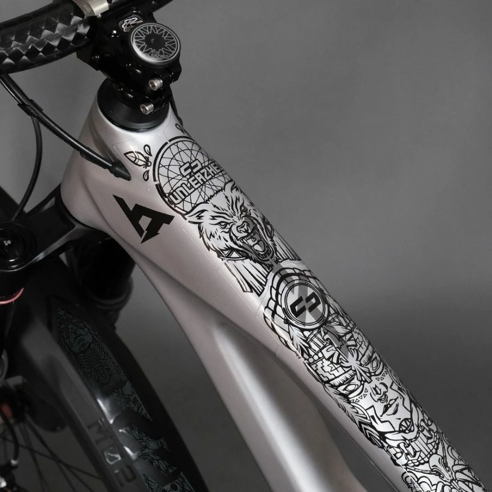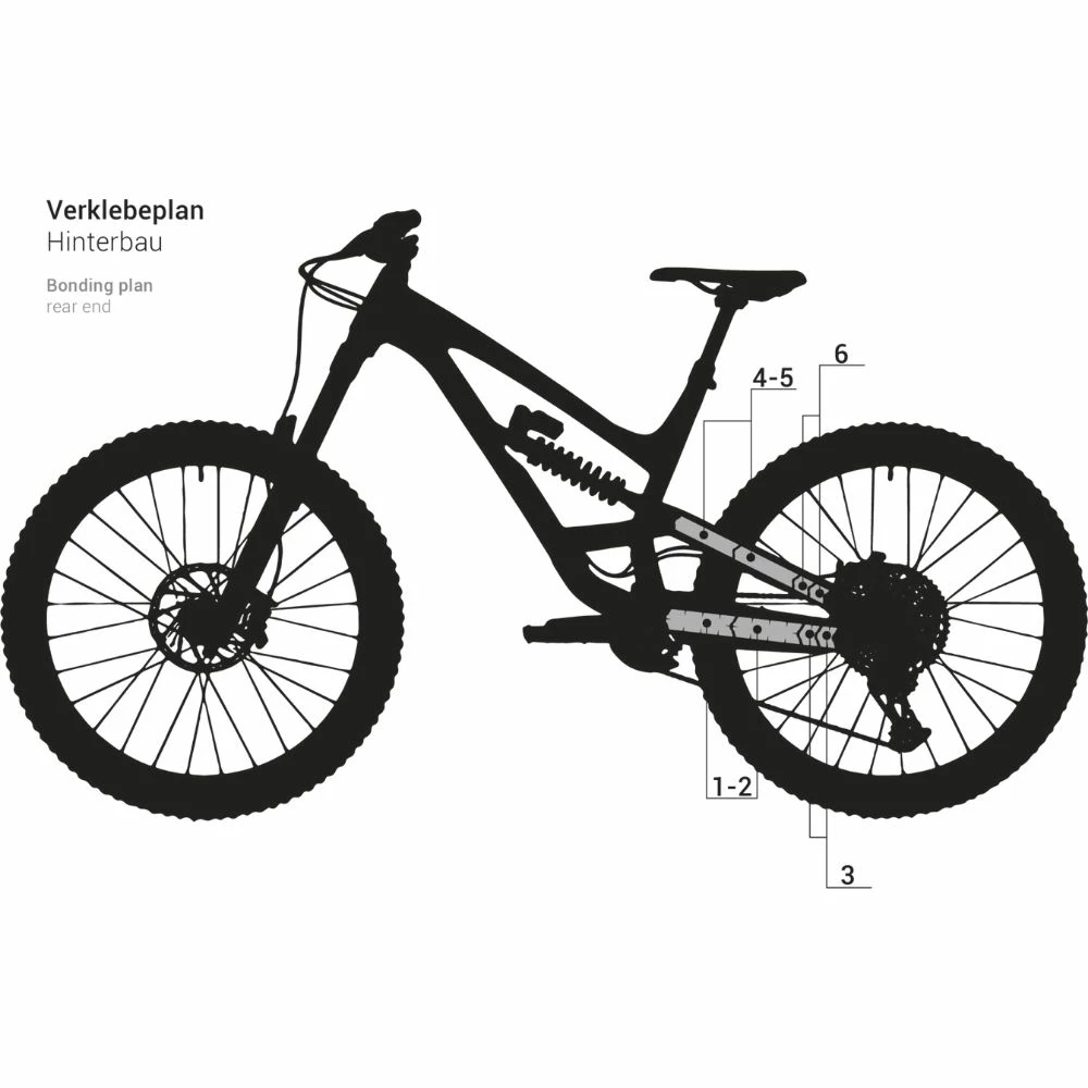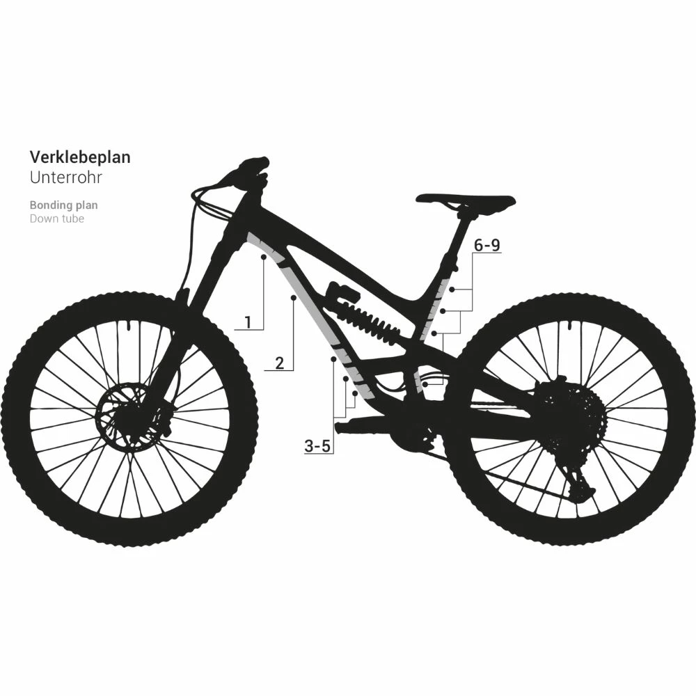 - Das Frame Kit besteht aus Folien für das Oberrohr, Unterrohr, Sitzrohr, die Sitzstreben und die Kettenstrebe