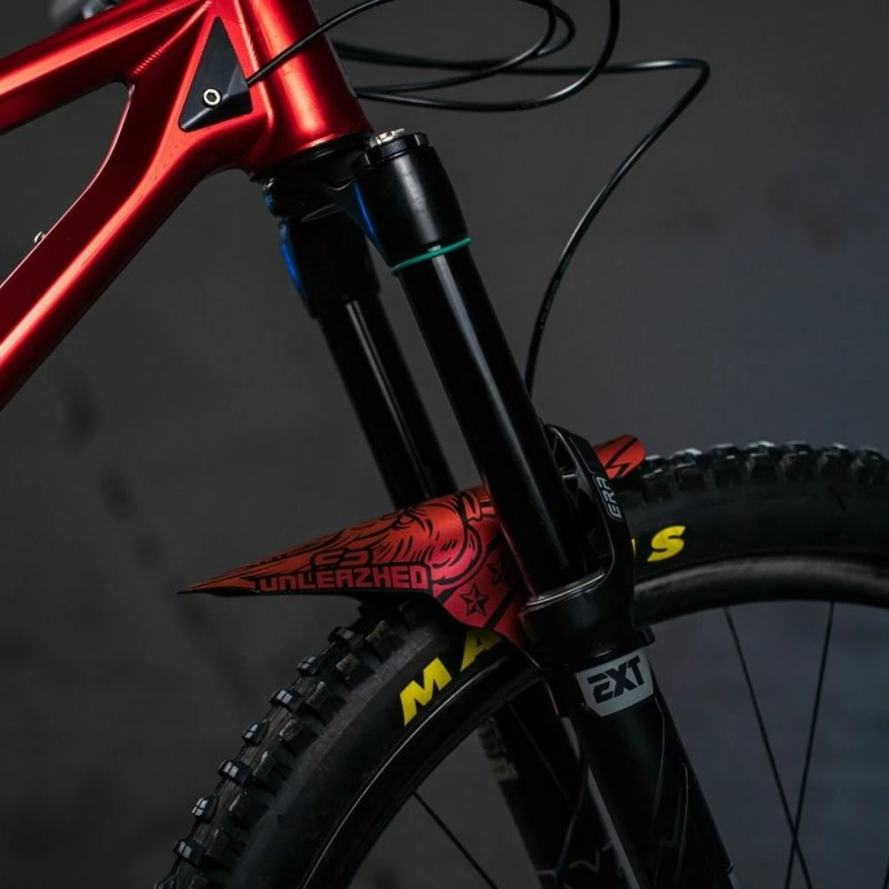 - Durch die seitlichen Einkerbungen an der Front des Mudguards liegt die Spitze flacher auf und ermöglicht einen optimalen Spritzschutz.